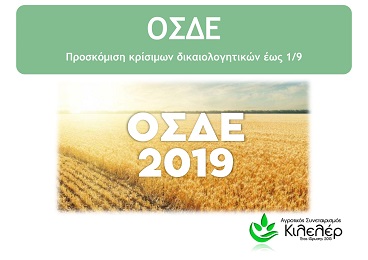 Σύμφωνα με εγκύκλιο του ΟΠΕΚΕΠΕ, που αναρτήθηκε στην διαύγεια στις 20 Ιουνίου, με αποδέκτες τα κέντρα υποδοχής δηλώσεων ΟΣΔΕ και τις αρμόδιες περιφερειακές διευθύνσεις, για τις διαδικασίες που πρέπει να ακολουθηθούν βάσει του Ολοκληρωμένου Συστήματος Διαχείρισης Αιτήσεων έτους 2019, γίνεται κατηγοριοποίηση των απαιτούμενων δικαιολογητικών σε: