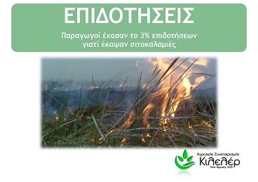 Άλλωστε η Διεύθυνση τονίζει ότι το κάψιμο σιτοκαλαμιών πρέπει να αποφεύγεται γιατί τα υπολλείμματα εμπλουτίζουν το έδαφος με οργανικές ουσίες και προστατεύουν τα εδάφη από τη διάβρωση. Μάλιστα, κάθε παραγωγός που υποβάλλει δήλωση καλλιέργειας ΟΣΔΕ αναλαμβάνει την υποχρέωση τήρησης των Κωδικών Ορθής Γεωργικής Πρακτικής, στο πλαίσιο της πολλαπλής συμμόρφωσης, σύμφωνα με τους οποίους δεν συνιστάται το κάψιμο καλαμιών.