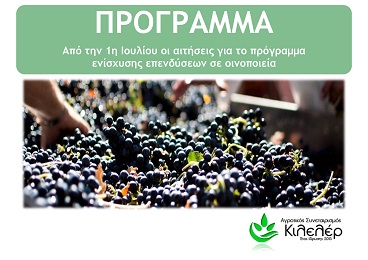 Το πρόγραμμα ενίσχυσης των επενδύσεων των οινοποιητικών επιχειρήσεων αφορά επενδύσεις σε τεχνολογίες αιχμής, στη βελτίωση της ποιότητας του παραγόμενου οίνου και στο marketing των οινικών προϊόντων.