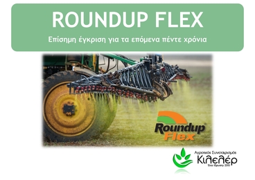 Επίσημη έγκριση για τα επόμενα πέντε χρόνια έλαβε από τις αρμόδιες υπηρεσίες του Υπουργείου Αγροτικής Ανάπτυξης το φυτοπροστατευτικό προϊόν (ζιζανιοκτόνο) ROUNDUP FLEX της εταιρείας Μονσάντο που εμπεριέχει την δραστική ουσία glyphosate.