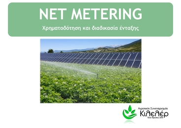 Η μείωση του λογαριασμού του ηλεκτρικού ρεύματος αποτελεί ζητούμενο, ιδίως στην τρέχουσα συγκυρία της οικονομικής κρίσης και οι Ανανεώσιμες Πηγές Ενέργειας αποτελούν αυτήν τη στιγμή την πιο σοβαρή εναλλακτική επιλογή για τον περιορισμό αυτής της δαπάνης. Στην Ελλάδα, το νομικό πλαίσιο κατευθύνει ουσιαστικά τον αγρότη στα φωτοβολταϊκά συστήματα και δη στο net metering, δηλαδή το πρόγραμμα αυτοπαραγωγής με συμψηφισμό παραγόμενης-καταναλισκόμενης ενέργειας, το οποίο επιτρέπει την παραγωγή ηλεκτρικής ενέργειας μέσω φωτοβολταϊκού συστήματος εγκατεστημένου στην αγροτική μονάδα. Όμως, το εύλογο ερώτημα που αμέσως γεννάται είναι πού θα βρεθούν τα χρήματα για μια τόσο μεγάλη επένδυση, καθώς το κόστος της εγκατάστασης δεν είναι αμελητέο.