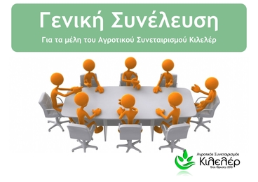 Το Διοικητικό Συμβούλιο του Αγροτικού Συνεταιρισμού Κιλελέρ, καλεί όλα τα μέλη του του, όπως προσέλθουν την Παρασκευή 10 Μαρτίου και ώρα 7:00 μμ. στα γραφεία του συνεταιρισμού για την Γενική Συνελευση, η οποία περιλαμβάνει τα παρακάτω θέματα: