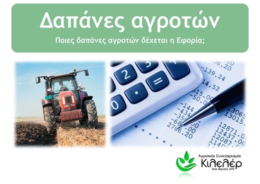 - Καύσιμα: Καθ' όλη τη διάρκεια του έτους ξοδεύονται συνεχώς καύσιμα από τα μηχανήματα των αγροτών. Για το όργωμα, το σβάρνισμα, τη σπορά, τη λίπανση, το πότισμα, το ράντισμα κ.λπ. απαιτούνται καθημερινά έξοδα. Γι? αυτές όλες τις εργασίες το πετρέλαιο που χρησιμοποιείται είναι έξοδο και εκπίπτει 100%. Το ίδιο ισχύει και στην περίπτωση που το καύσιμο είναι βενζίνη ή υγραέριο ή ακόμη και pellets. Αυτό που έχει σημασία και κάνει τη διαφορά είναι το είδος του μηχανήματος που καταναλώνει το καύσιμο. Προϋπόθεση έκπτωσης εξόδων, η άδεια κυκλοφορίας του αγροτικού μηχανήματος ή του ΦΙΧ αγροτικού να είναι στο όνομα του παραγωγού της καλλιέργειας.