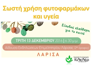 Ο Γεωπονικός Σύλλογος Ν. Λάρισας & η Ελληνική Αντικαρκινική Εταιρεία / Παράρτημα Λάρισας σας προσκαλούν στην ημερίδα, που διοργανώνουν την