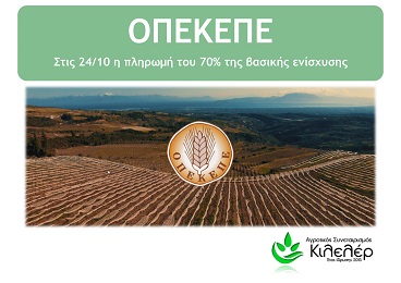 Την Πέμπτη 24 Οκτωβρίου θα πιστωθούν από τον ΟΠΕΚΕΠΕ τα χρήματα που αντιστοιχούν στο 70% της βασικής ενίσχυσης, δηλαδή γύρω στο 55% της Ενιαίας Ενίσχυσης, για τους παραγωγούς που έχουν βιβλιάριο στην Τράπεζα Πειραιώς.